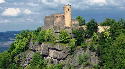 Ten zamek na skale odwiedzisz jesienią. Z baszty można podziwiać Karkonosze