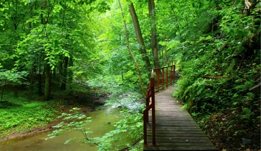 Romantyczna promenada w polskich górach. Biegnie malowniczym wąwozem