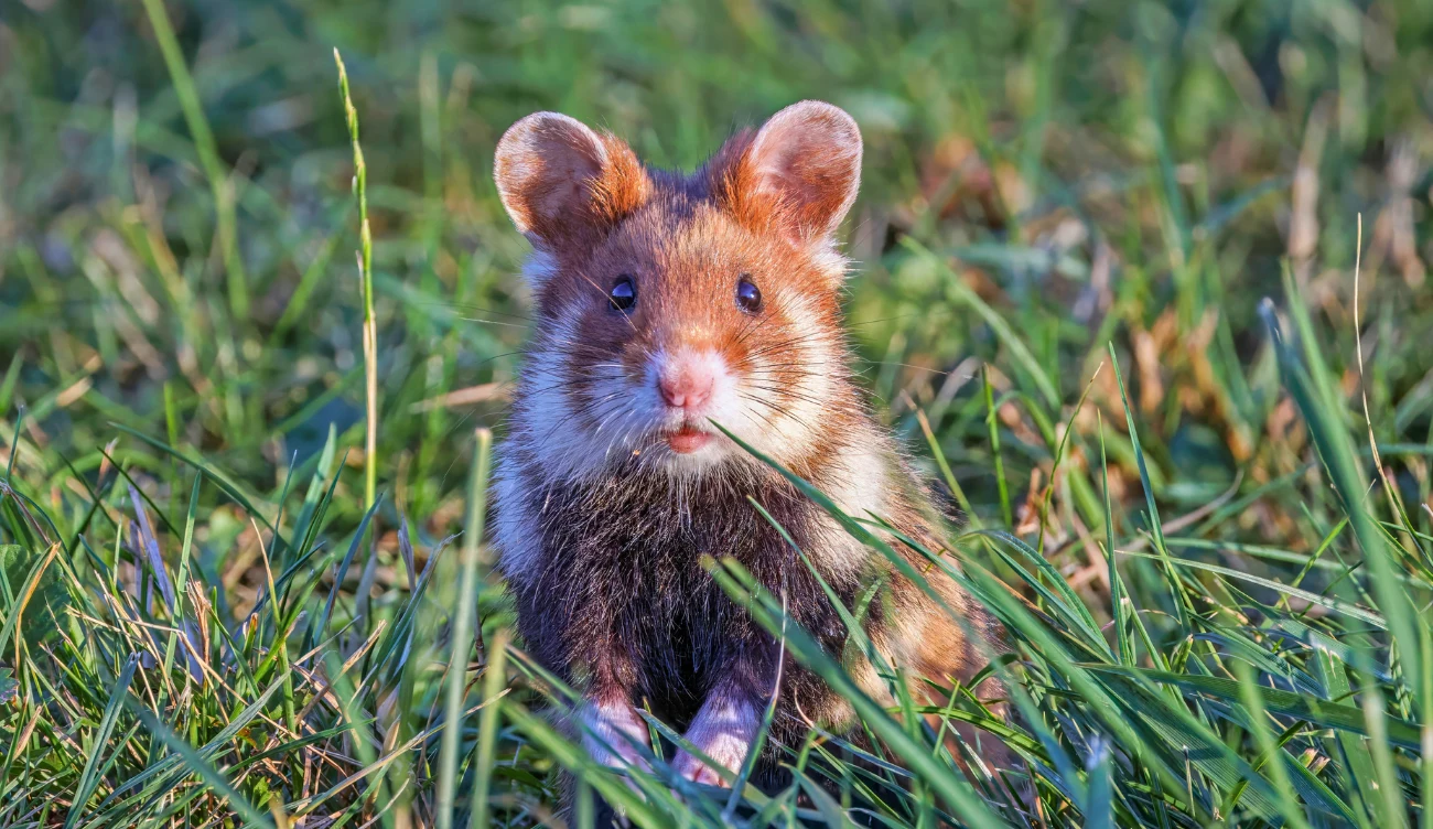 Jak rozpoznać chomika europejskiego? Zwierzę osiąga długość do 34 cm, a jego ogon ma zaledwie 3-4 cm, natomiast waga chomika może wynosić od 400 do nawet 1000 g! Chomik europejski ma krępą budowę ciała, gęstą krótką brązową sierść, czarny brzuch oraz żółte plamy na bokach ciała. Warto dodać, że zwierzątko posiada też torby policzkowe do “chomikowania" pokarmu oraz charakterystyczne małe uszy. Jest także gatunkiem synantropijnym, co oznacza, że zamieszkuje blisko gospodarstw, a najchętniej osiedla się na polach zbożowych, które są jego głównym składnikiem pożywienia.