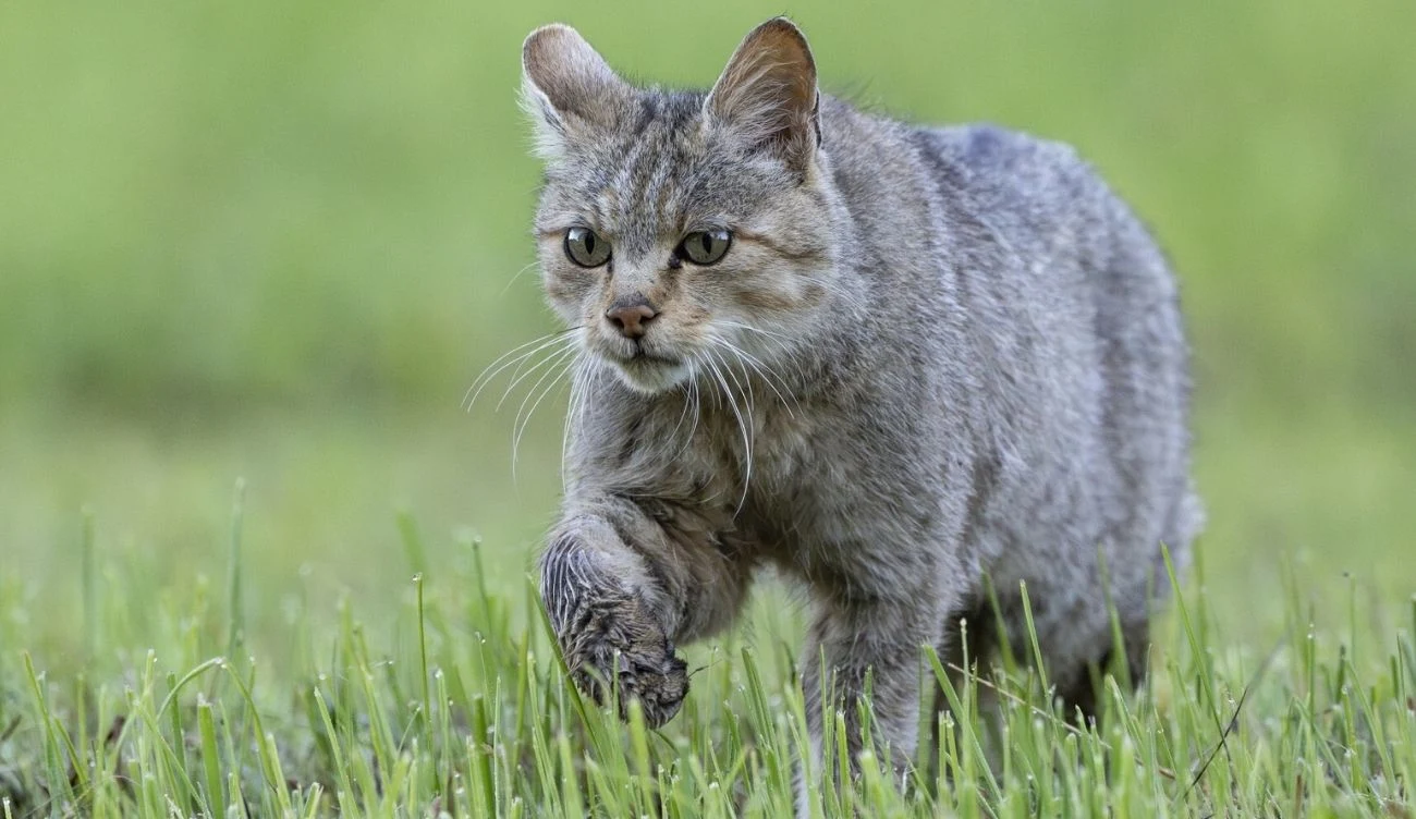 Żbik europejski (Felis silvestris) poluje o zmierzchu i świcie na gryzonie, ptaki i małe ssaki. Chociaż na pierwszy rzut oka łatwo go pomylić z domowym kotem, to ma kilka cech, które pozwolą odróżnić te dwa gatunki. Jedną z nich jest puszysty ogon z czarnymi pierścieniami. Wzdłuż grzbietu przebiega czarna pręga, która rozdwaja się na karku. Niektóre osobniki mają białą plamkę na podgardlu, ale łatki nie występują na pozostałej części ciała.