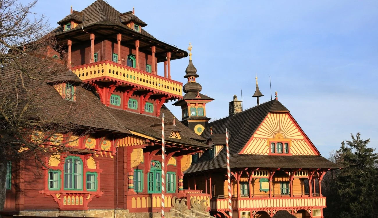 Pustevny to niezwykła przełęcz w Beskidzie Śląsko-Morawskim, położona tuż obok szczytu Radhošť, jednego z najbardziej znanych punktów wycieczkowych w tej części Czech. To miejsce szczególne — nie tylko ze względu na piękne górskie widoki, ale także dzięki unikalnej architekturze. Możemy zobaczyć tam kompleks schronisk, który został zaprojektowany na początku XX wieku przez słowackiego architekta Dušana Jurkoviča, który z pasją łączył elementy budownictwa ludowego z secesją. Efekt jego pracy to barwne, drewniane budynki ozdobione ornamentami, rzeźbieniami i detalami, które wyglądają jak przeniesione z bajki.