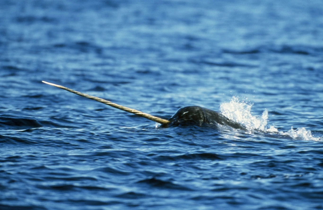 Dziś wiemy, że narwal jednozębny to prawdziwe arktyczne zwierzę, które zamieszkuje lodowate wody północnego Atlantyku — od Grenlandii po Syberię. Jego najbardziej rozpoznawalną cechą jest spiralnie skręcony "róg" - w rzeczywistości to przerośnięty kieł, który u samców wyrasta z lewej górnej szczęki. Może osiągać nawet 3 metry długości, ważyć 10 kg i zawierać miliony niezwykle czułych zakończeń nerwowych. Naukowcy podejrzewają, że narwale wykorzystują go do badania otoczenia, wykrywania temperatury, zasolenia czy ciśnienia w wodzie — a nie, jak kiedyś sądzono, do walki.