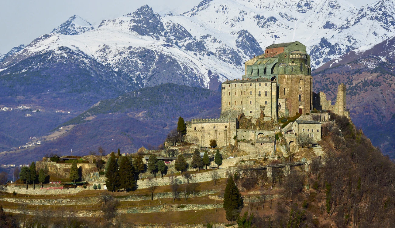 Nie bez powodu Abbazia di San Michele della Chiusa określana jest symbolem Piemontu. Kompleks w stylu romańsko-gotyckim na tle gór zachwyca swoją architekturą niezależnie od pory roku.