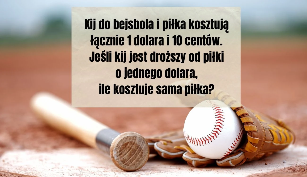Kij do bejsbola i piłka kosztują łącznie 1 dolara i 10 centów. Jeśli kij jest droższy od piłki o jednego dolara, ile kosztuje sama piłka?