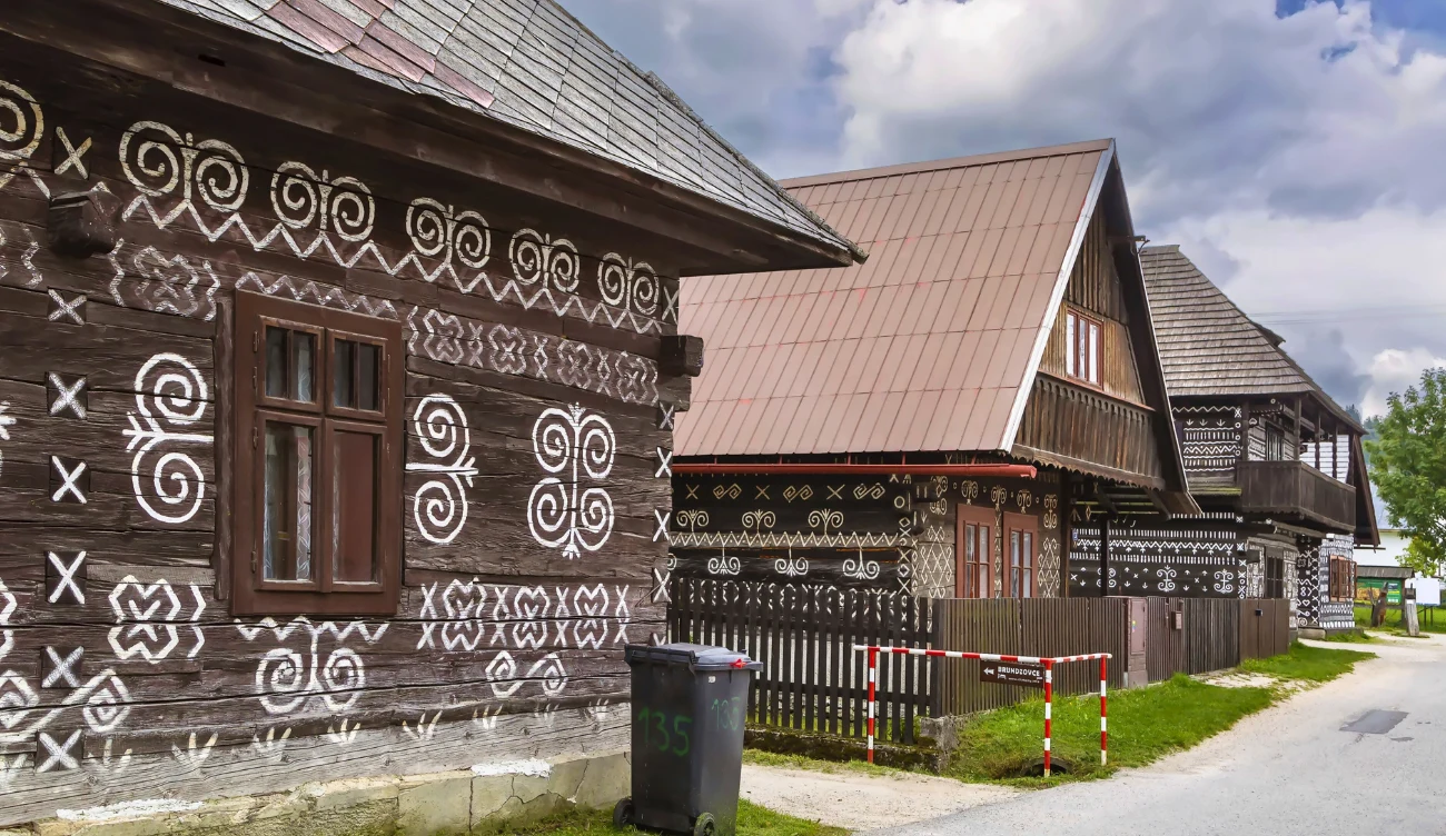 Baśniowy wygląd słowackiej wioski wynika z misternie wykonanych białych ornamentów na fasadach budynków, które z daleka przykuwają wzrok. Domy w Čičmanach wzniesiono z drewna w konstrukcji zrębowej, podobnie do innych zabudowań w tym górskim rejonie. Skąd tradycja malowania domów? Bielenie wapnem ścian to dobrze znana praktyka, która zapobiegała pękaniu drewna oraz chroniła je przed promieniami słońca i wilgocią. W Čičmanach pierwsze malowidła zdobiły tylko narożniki domów i budynków gospodarczych, a dopiero potem całe ściany. W 1895 roku na Narodowej Wystawie w Pradze Dušan Jurkovič zaprezentował kopię cziczmańskiego domu, która wywołała ogromne emocje.