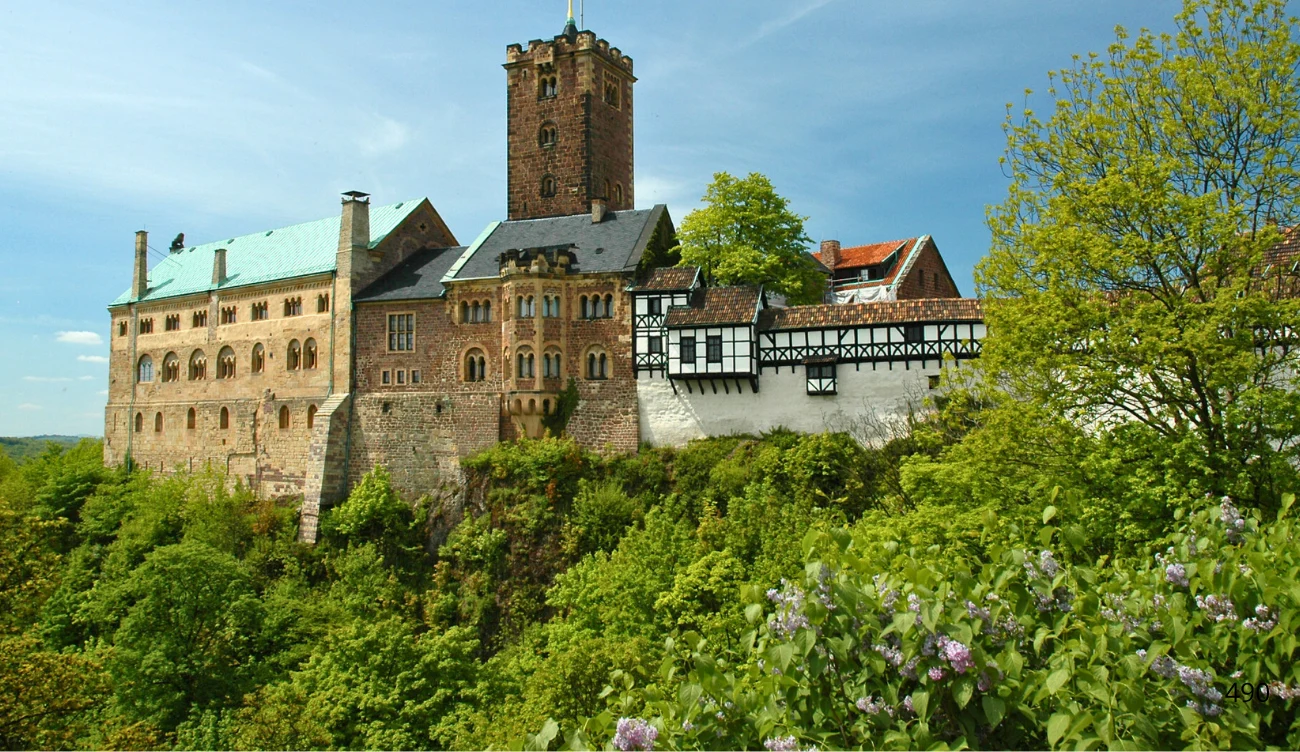 Nie bez powodu od 1999 roku zamek Wartburg znajduje się na liście światowego dziedzictwa kultury UNESCO, jego historia, ale przede wszystkim wymowna symbolika stanowi prawdziwe "serce" Niemiec. Warownia została wzniesiona na 400 m wzgórzu prawdopodobnie w 1067 roku przez hrabiego Ludwika Skoczka z rodu Ludowingów, który krzyknął "Wart, berg!", co można przetłumaczyć jako "Poczekaj, góro!". Jednak dopiero w latach 1156-1162 zamek Wartburg zyskał znany do dziś styl późnoromański, natomiast w XIII wieku stał się własnością dynastii Wettynów. Przed tym warownia była już centrum średniowiecznej poezji niemieckiej, natomiast na przełomie lat 1221-1227 zamieszkiwała ją św. Elżbieta z Turyngii. Jednak to nie ta postać najbardziej zapisała się na kartach historii twierdzy i kraju.