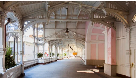 Warto też zwrócić uwagę na perełkę Karlowych War, czyli Kolumnadę Targową w stylu szwajcarskim z 1883 roku według projektu F. Fellnera i H. Helmera. Wzniesiona na miejscu starego ratusza oraz najstarszych w mieście łaźni wyróżnia się misterną drewnianą architekturą i rzeźbami. We wnętrzu Kolumnady Targowej są aż trzy źródła leczniczych wód - Rynku, Zamku Dolnego i źródła Karola IV. Co ciekawe, prawdziwy symbol Karlowych War, czyli gejzer Vridla jest w Kolumnadzie Uzdrowiskowej, gdzie wystrzeliwuje na 12 metrów około 2000 litrów wody o temperaturze 73°C na minutę!