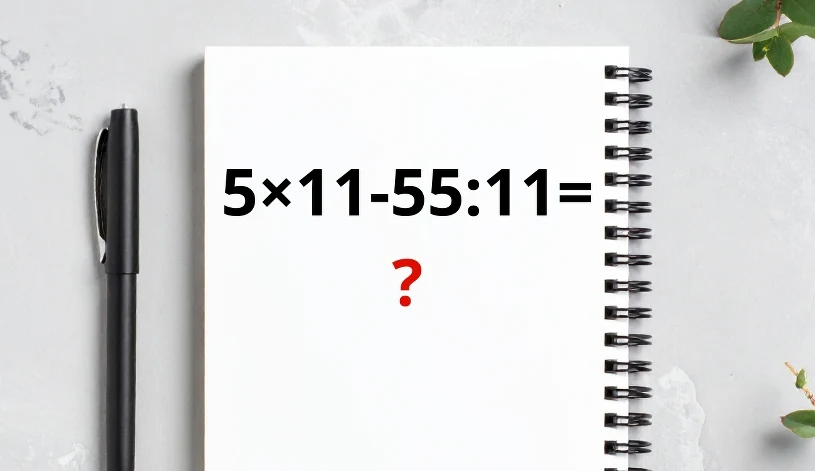 Dzisiejsze zadanie to krótkie działanie: 5×11-55:11=?. Może wydawać się banalne — nie pozwól, aby pewność siebie cię zgubiła. Porządnie mu się przyjrzyj i zastanów, w jakiej kolejności powinieneś je rozwiązać. Nie używać kalkulatora, ani innych pomocy — tylko wtedy będziesz w stanie zmusić swój umysł do pracy. Nieliczni będą w stanie wykonać obliczenia w pamięci bez najmniejszego problemu.