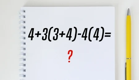 Zadanie na dziś polega na obliczeniu w pamięci działania: 4+3(3+4)-4(4)=?. Nie korzystaj z kalkulatora, ani innych pomocy — potrzebna tu będzie jedynie siła twojego mózgu. Przekonaj się, czy poradzisz sobie z tym wyzwaniem bez żadnych trudności.