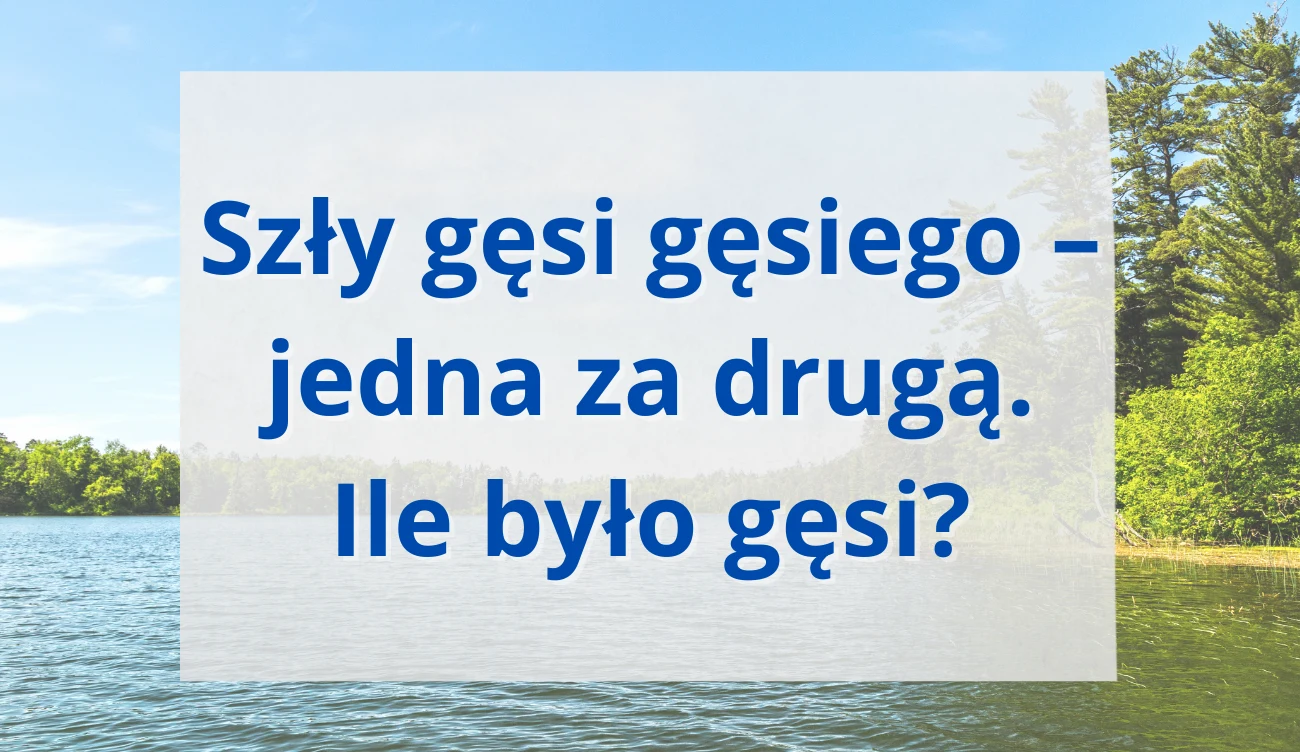 Skoro szły gęsi gęsiego i jedna szła za drugą, to bardzo łatwo wskazać ich liczbę. W takich łamigłówkach odpowiedź jest już zawarta w treści, tylko trzeba błyskawicznie ją dostrzec. Oporni na myślenie mogą rozrysować tę zagadkę lub w inny sposób próbować dojść do rozwiązania. Każda metoda jest dobra, jeśli zmusza do myślenia i kieruje w stronę poprawnej odpowiedzi.