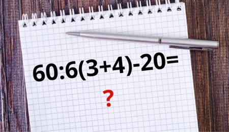 Dzisiejsze zadanie polega na rozwiązaniu krótkiego działania: 60:6(3+4)-20=?. Nie używaj do tego zadania kalkulatora, ani kartki papieru i długopisu. Powinieneś rozwiązać je w pamięci, jedynie za pomocą umiejętności swojego umysłu. Jeśli lubisz wyzwania, możesz dodatkowo nastawić stoper, aby przekonać się, jak szybko będziesz w stanie dojść do rozwiązania zagadki. Weź głęboki oddech, skup się i bierz się do roboty!