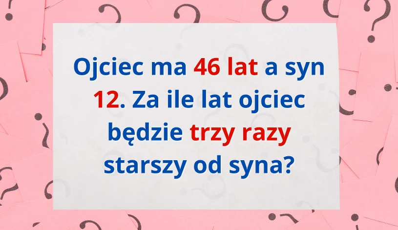 “Ojciec ma 46 lat a syn 12. Za ile lat ojciec będzie trzy razy starszy od syna?"