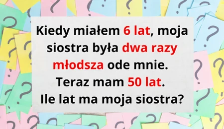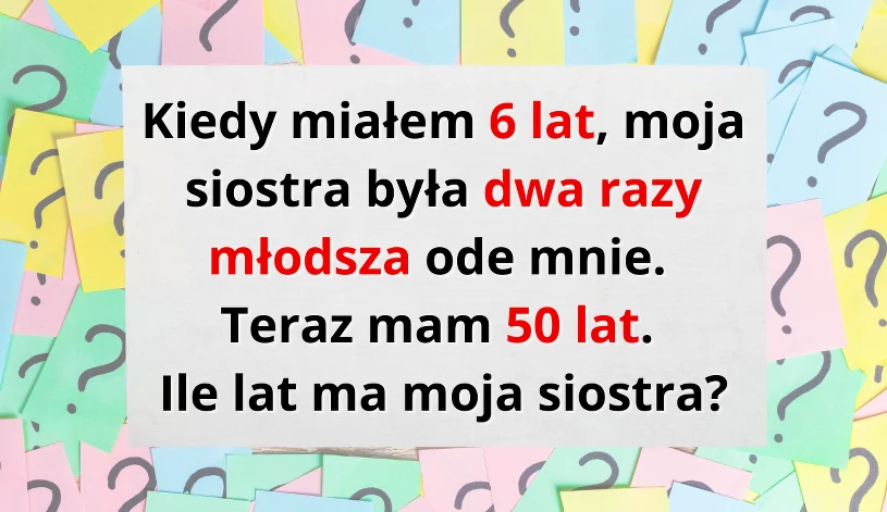“Kiedy miałem 6 lat, moja siostra była dwa razy młodsza ode mnie. Teraz mam 50 lat. Ile lat ma moja siostra?"