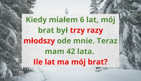 “Kiedy miałem 6 lat, mój brat był trzy razy młodszy ode mnie. Teraz mam 42 lata. Ile lat ma mój brat?"