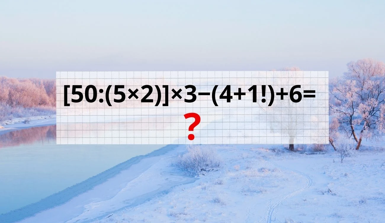 [50:(5×2)]×3−(4+1!)+6=?(50:10)x3-5+6=?5x3-5+6=?