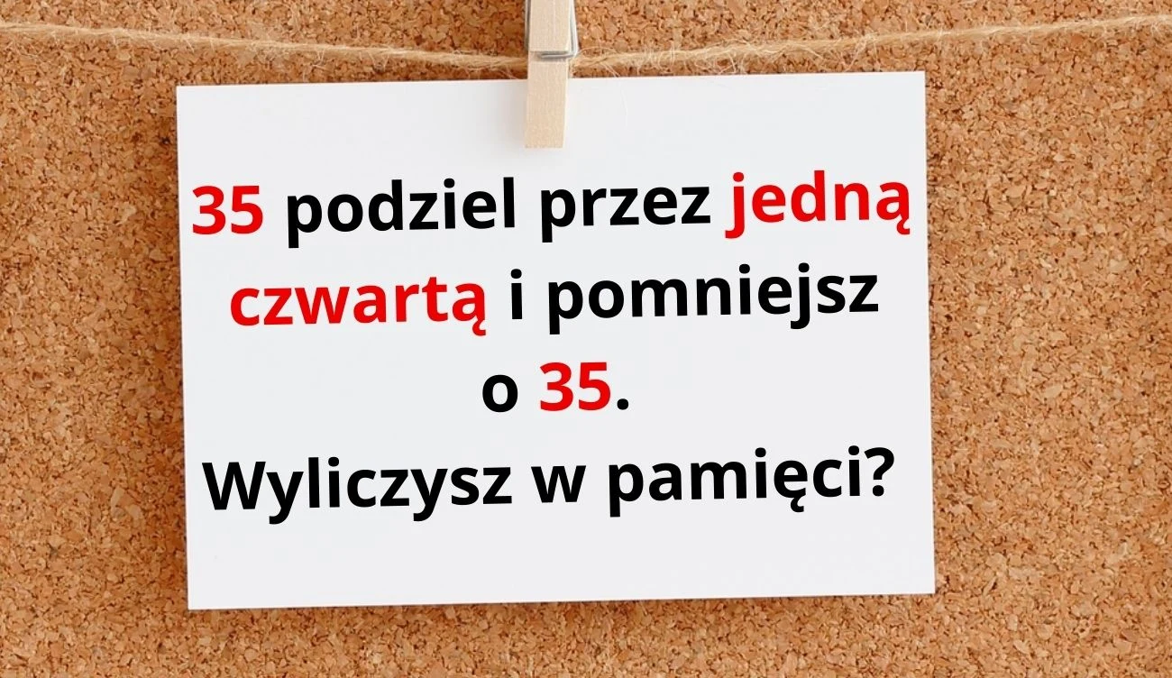 W tej zagadce matematycznej konieczna jest znajomość jednej prostej zasady. Dzielenie przez ułamek jest tym samym, co mnożenie przez jego odwrotność. Skoro w treści zagadki jest polecenie, żeby 35 podzielić przez 1/4, należy zapisać wyrażenie arytmetyczne w ten sposób: