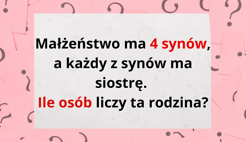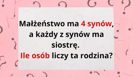 “Małżeństwo ma 4 synów, a każdy z synów ma siostrę. Ile osób liczy ta rodzina?".