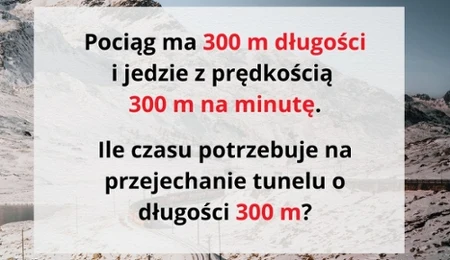 W treści zagadki na logiczne myślenie mamy podane 3 proste informacje: długość pociągu i tunelu oraz prędkość, z jaką porusza się pociąg. Po chwili zastanowienia można udzielić poprawnej odpowiedzi, o ile tylko nie pójdzie się na skróty.