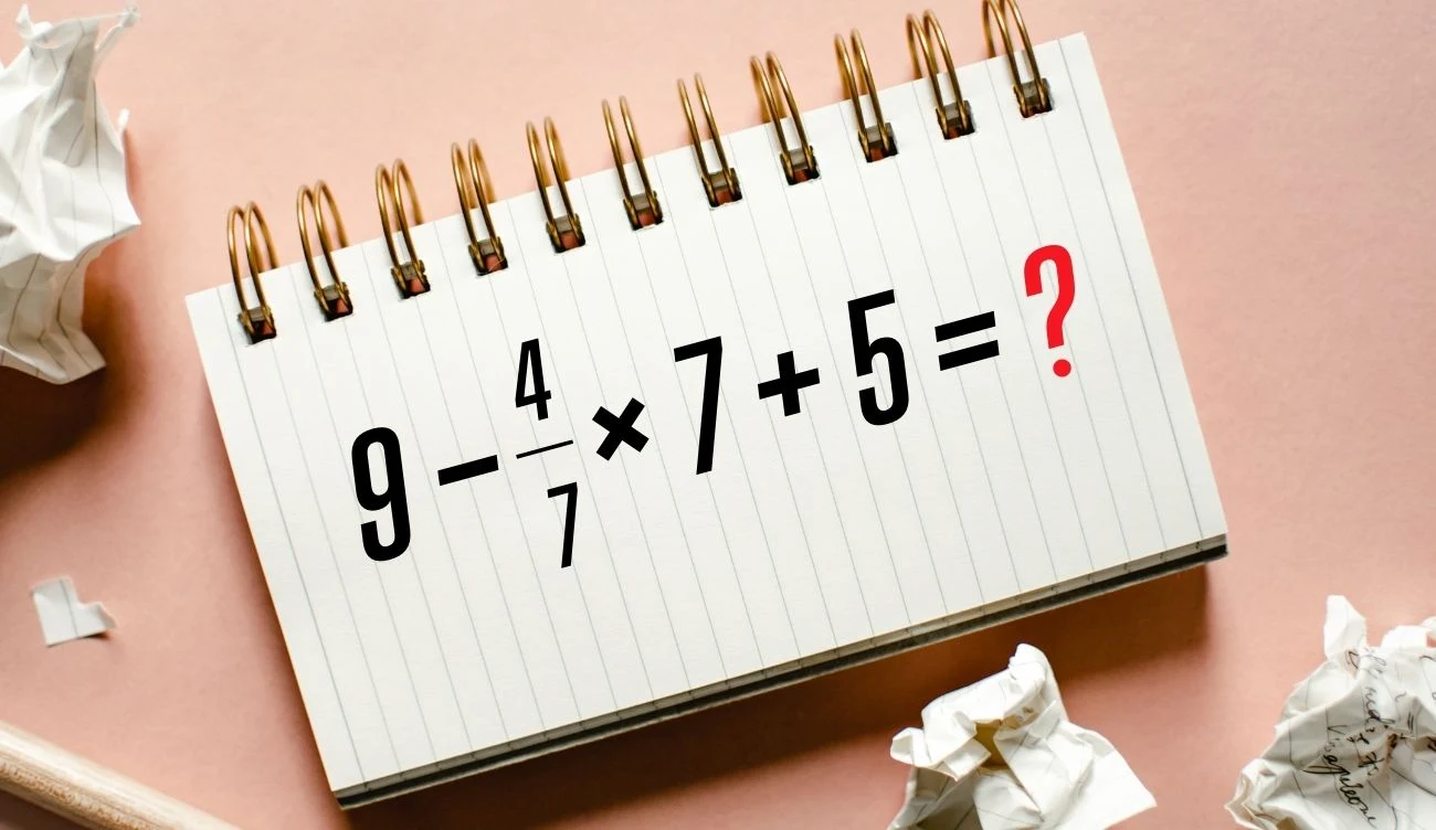 Zagadka: 9 − ⁴⁄₇ × 7 + 5 = ?