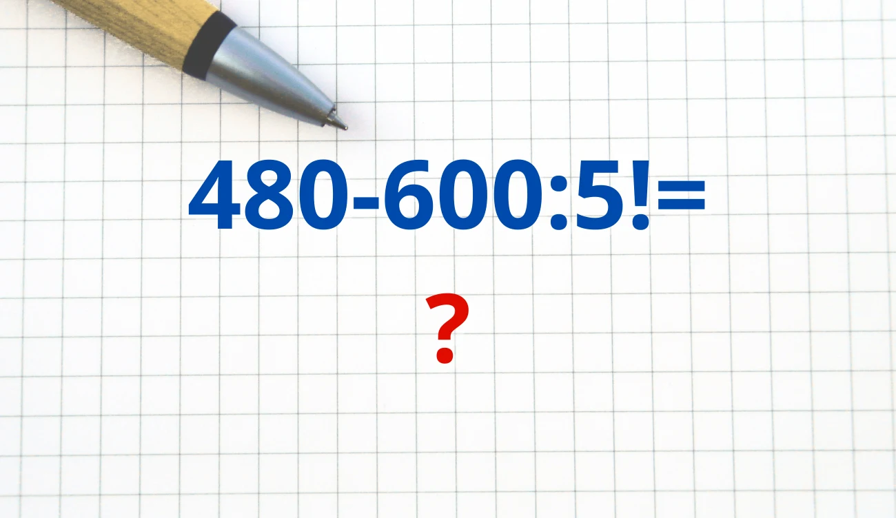 Jak szybko podasz wynik, który jest poprawny? Bez znajomości reguł, masz na to małe szanse, ponieważ, to właśnie one są kluczem do rozwiązania zadania. Zastanów się, jak sprawić, aby obliczyć 480-600:5!=? i nie trafić na haczyk. Potrzebujesz podpowiedzi? Tutaj musisz skorzystać z kolejności wykonywania działań i definicji silni.
