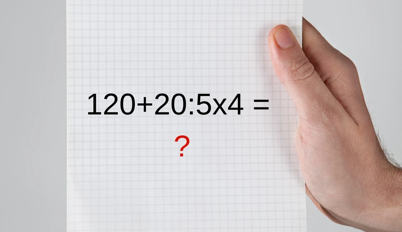 Zagadka matematyczna na dziś polega na rozwiązaniu krótkiego działania: 120+20:5x4 = x. Jest to dosyć proste zadanie, ale z jedną pułapką. Aby dojść do prawidłowego rozwiązania, potrzebna będzie wiedza z podstawówki, dokładniej kolejność wykonywania działań. Jeśli dobrze ją pamiętasz, działanie nie będzie stanowić dla ciebie żadnego problemu.