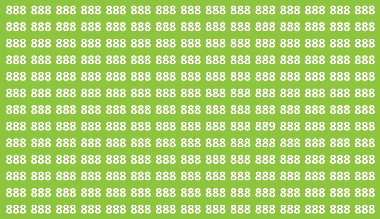 Na początek wpatrz się w planszę, na której tylko pozornie widnieją same 888. Znaczna część spryciarzy nie potrafi pośród nich odszukać zagubionej 889, przez co tracą nerwy oraz chęci. Jak tego uniknąć? Bystrzakom wystarczy zaledwie jeden “rzut" okiem, aby wskazać tę liczbę. Czy też tak potrafisz?