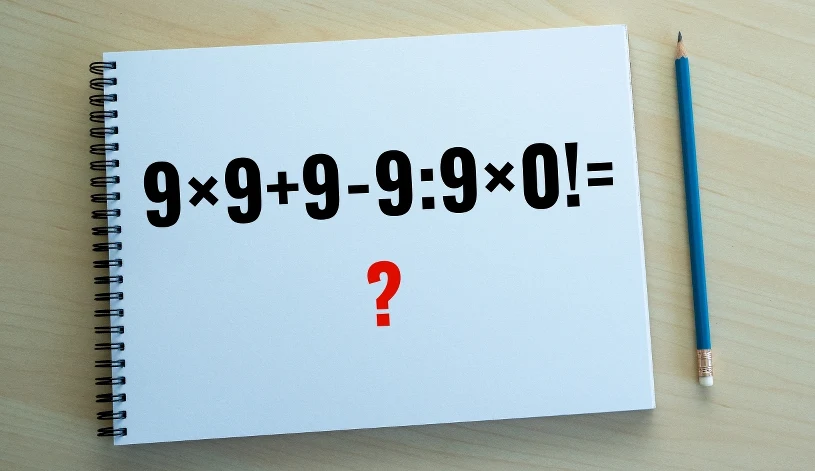 Dzisiejsze zadanie polega na obliczeniu krótkiego działania: 9×9+9-9:9×0!=?. Nie używaj kalkulatora, ani innych pomocy — potrzebna ci będzie jedynie znajomość tabliczki mnożenia i podstawowych zasad matematycznych. Przekonaj się, ile pamiętasz z podstawówki i czy potrafisz się skupić. Tylko nieliczni dochodzą do rozwiązania za pierwszym razem.