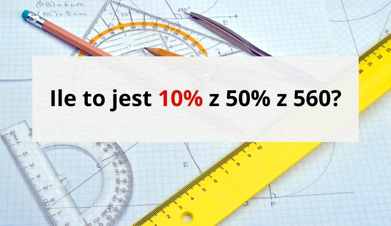 50% z 560 to nic innego jak 0,5 × 560. Wynikiem tego działania jest liczba 280. Następnie należało dowiedzieć się, ile stanowi 10 procent tej liczby — wystarczyło wykonać działanie 0,1 × 280=28.