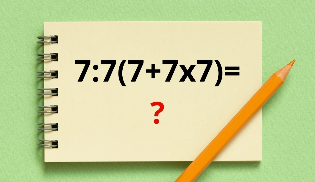 Zadanie na dzisiaj to działanie: 7:7(7+7×7)=?. Niech nie zmyli cię liczba siódemek. Porządnie się skup i postaraj się nie zgubić żadnej z nich w obliczeniach. Odłóż na bok kalkulator i polegaj jedynie na swojej wyobraźni oraz sprawności w rachunkach — tylko wtedy przekonasz się, jak działa twój mózg. Zanim podasz swój wynik, upewnij się, że dobrze pamiętasz kolejność wykonywania działań.